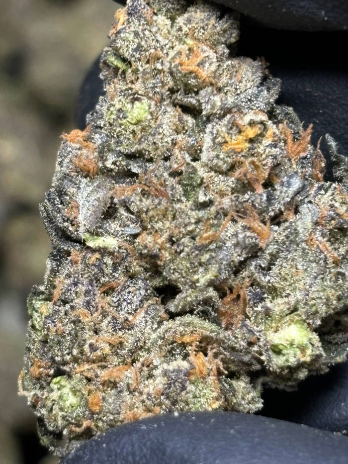 Discover Uncle Buddy’s Modified Grapes buds that are dense and visually striking, featuring a sandy olive-green color with deep purple undertones. Thin burnt-orange hairs and a generous coating of dark purple-tinted white trichomes give these flowers a dazzling, premium aesthetic, Also with an impressive THCA content ranging from 26.15% to 29%, delivering powerful effects with a complex flavor profile.